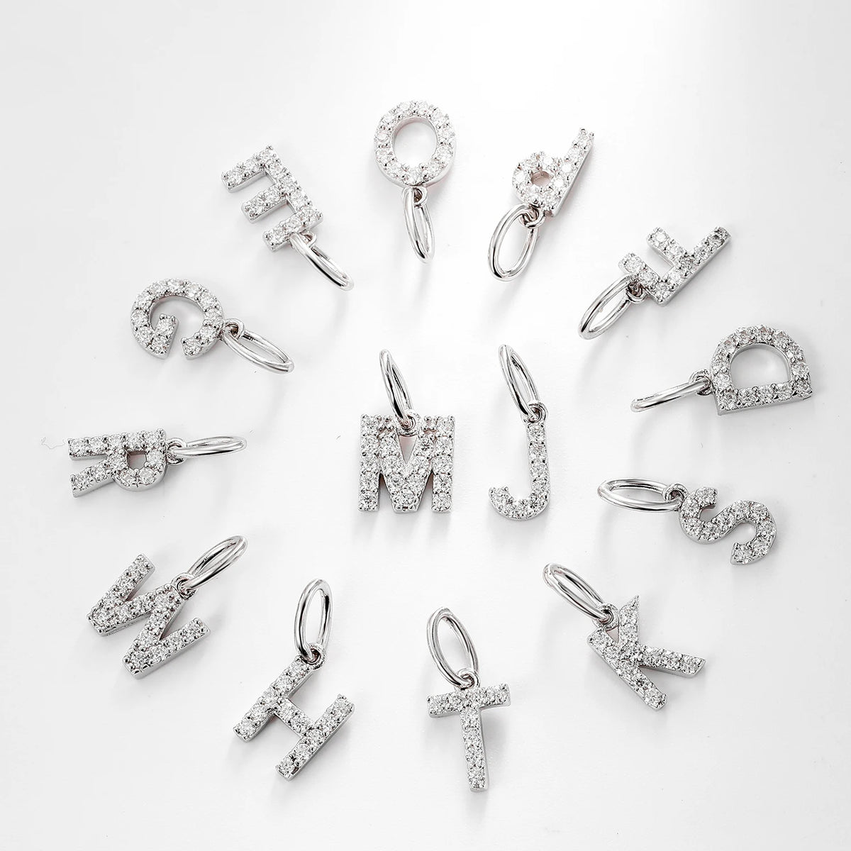 Tiny Moissanite Initial Letter Charms Pendant 925 Sterling Silver