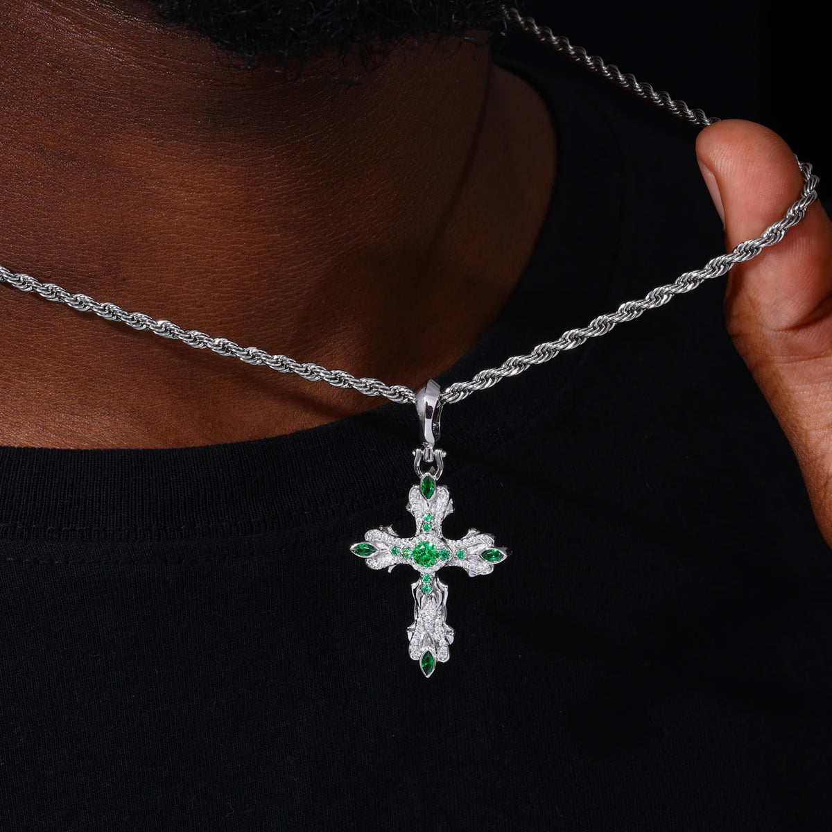A bold statement piece that blends spirituality, luxury, and modern style. This cross pendant necklace is designed for those who want to stand out, combining dazzling moissanite stones with a hip-hop inspired aesthetic.