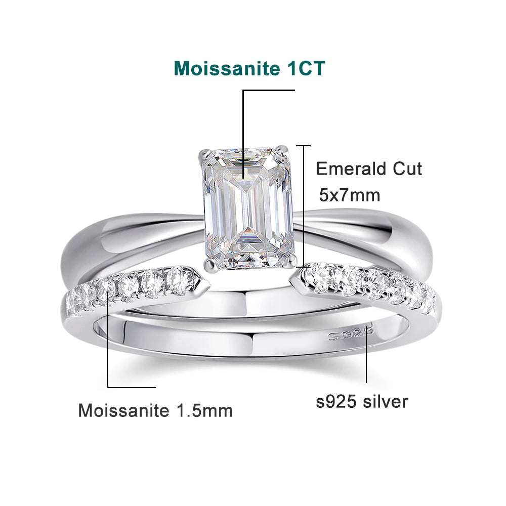 - Main Stone: 1ct Emerald‑Cut Moissanite