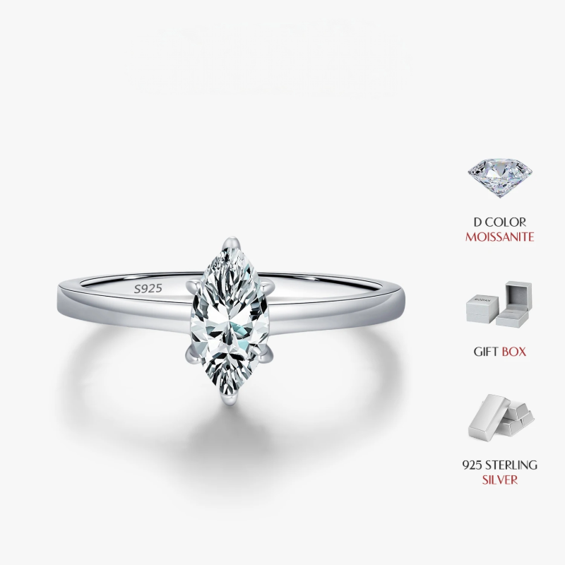 Aurora D-Color Marquise Rhombic Moissanite Sterling Elegance Ring