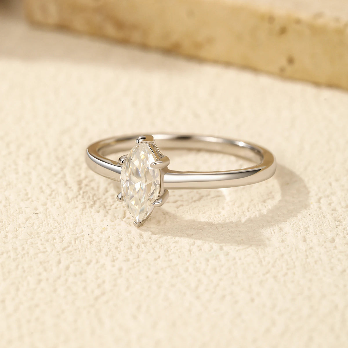 Elevate your style with timeless brilliance. This luxury band ring features a D-Color marquise-cut rhombic moissanite, expertly set in 925 sterling silver for a radiant finish that exudes sophistication. Designed for women who appreciate fine craftsmanship, the sleek band sparkles with fire and clarity, making it the perfect choice for weddings, anniversaries, or elegant everyday wear.
